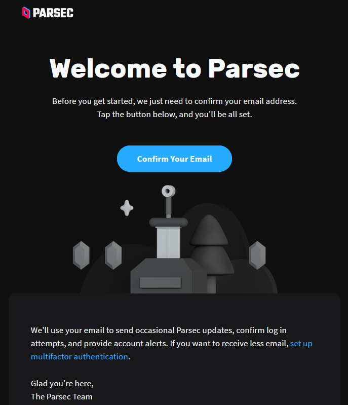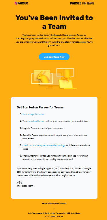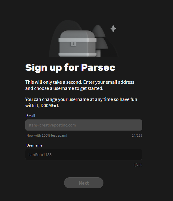 3. Sign up for Parsec with same email as the one used for this request.